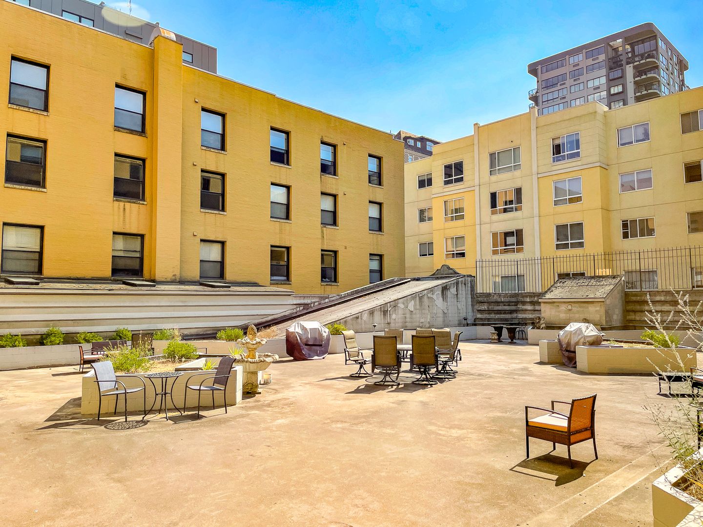 Today, The Tuscany offers 87 apartment homes - both Studios, 1 & 2-bedrooms, many of which have been refinished. Most of the historic tiling and elegant details of the hotel lobby have remained, as well as the large private courtyard for residents!