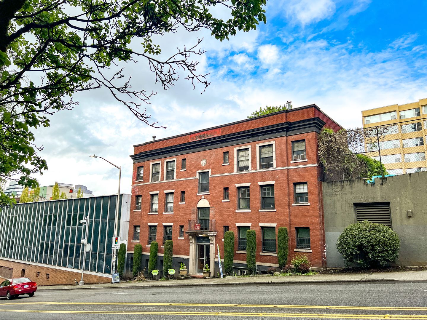 The Embassy Apartments is centrally located near downtown Seattle along Boren Avenue between Pike St & Union St. It is the center of a commuter's paradise, and walking distance to Capitol Hill, First Hill, Downtown, and Pike Place Market! Built in 1926, this 4-level red brick vintage building is comprised of 45 living spaces, all of which are studio apartments with 4 different layouts to choose from.
