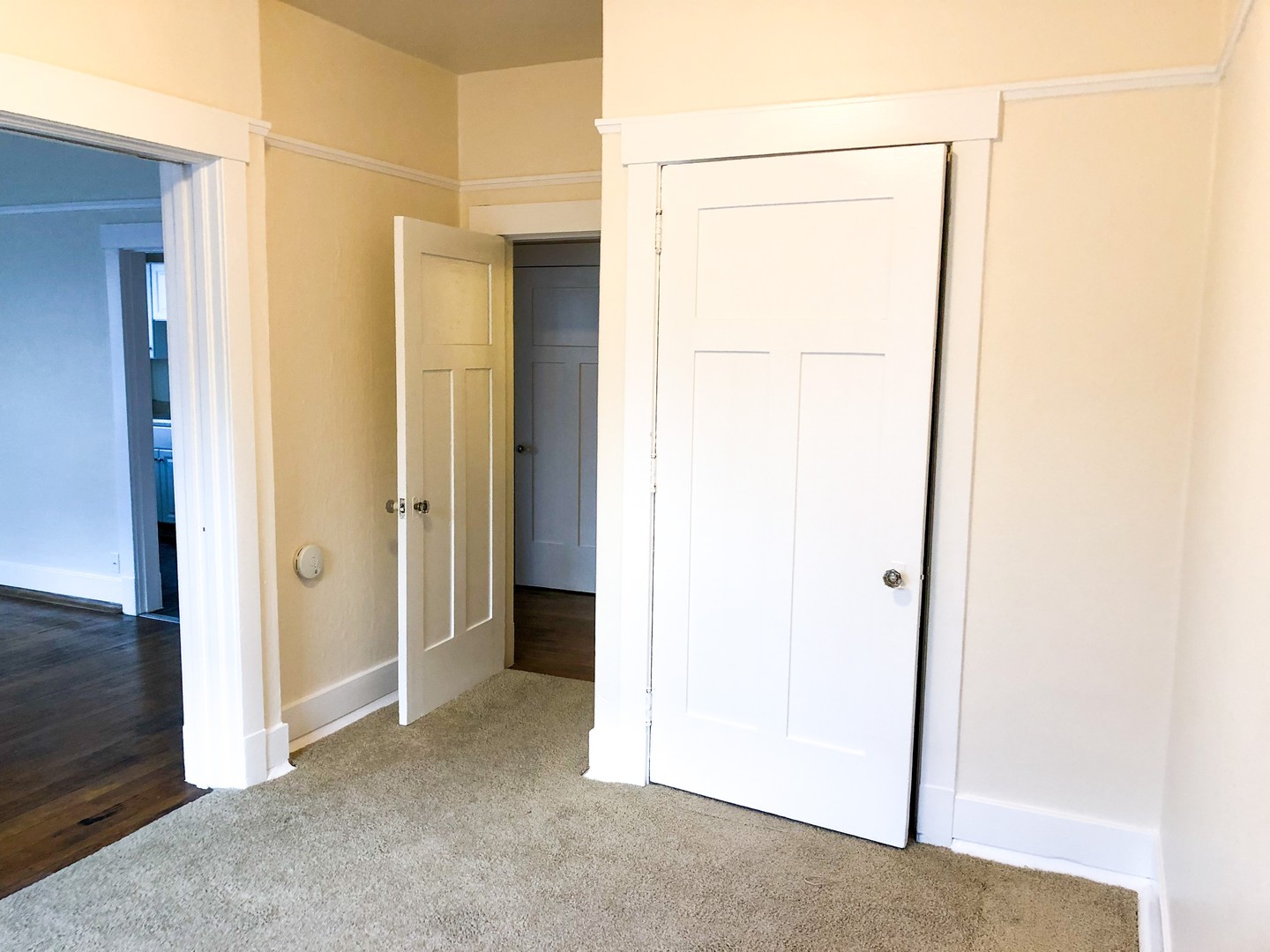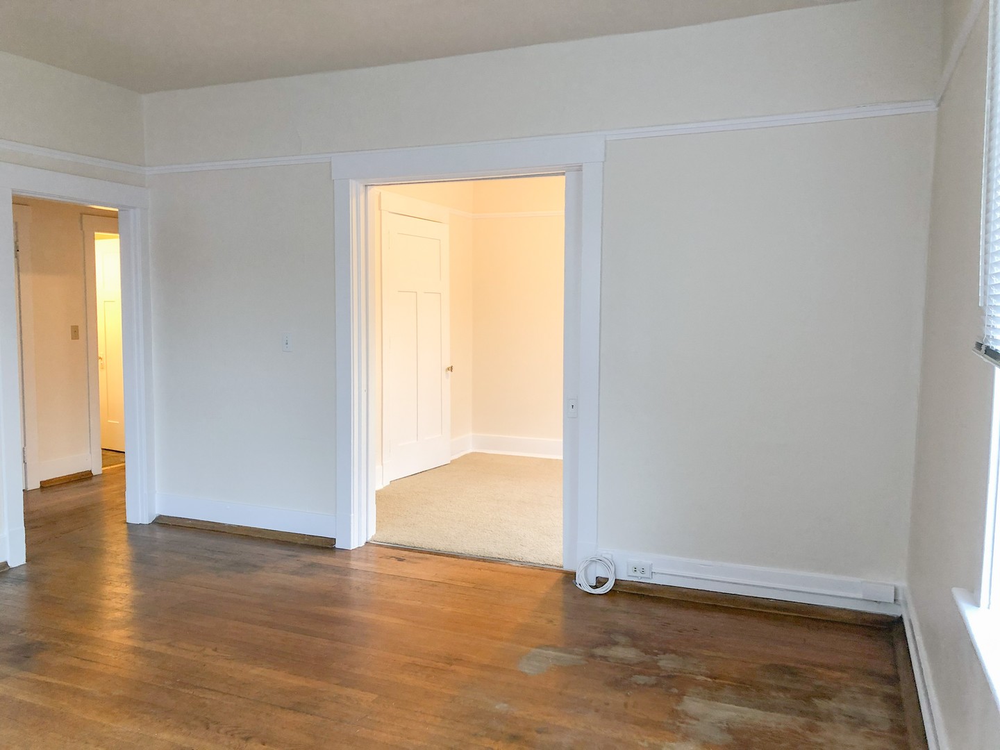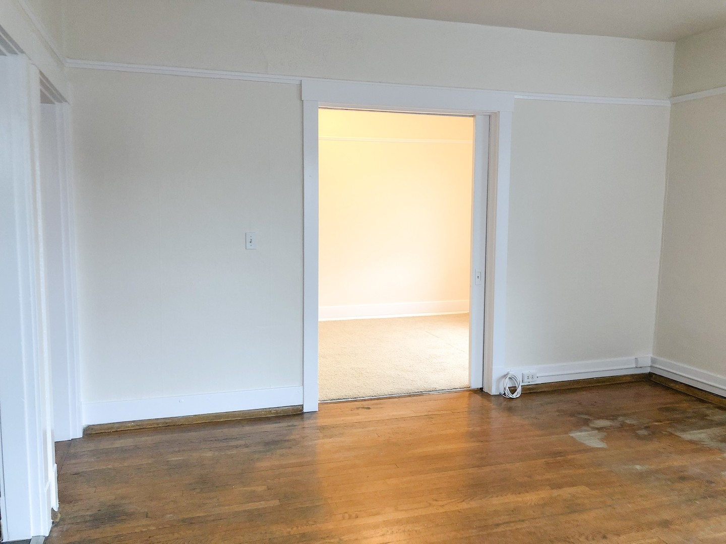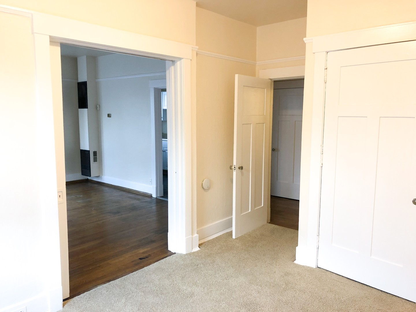 This unique 1 bedroom features original hardwood floors and vintage fixatures including a built in China cabinet with buffet. Beautiful bay windows invite in natural light while the 10 ft ceilings open up this classic space. Pocket doors separate the large bedroom (14x9). Two walk in closets provide plenty of storage.