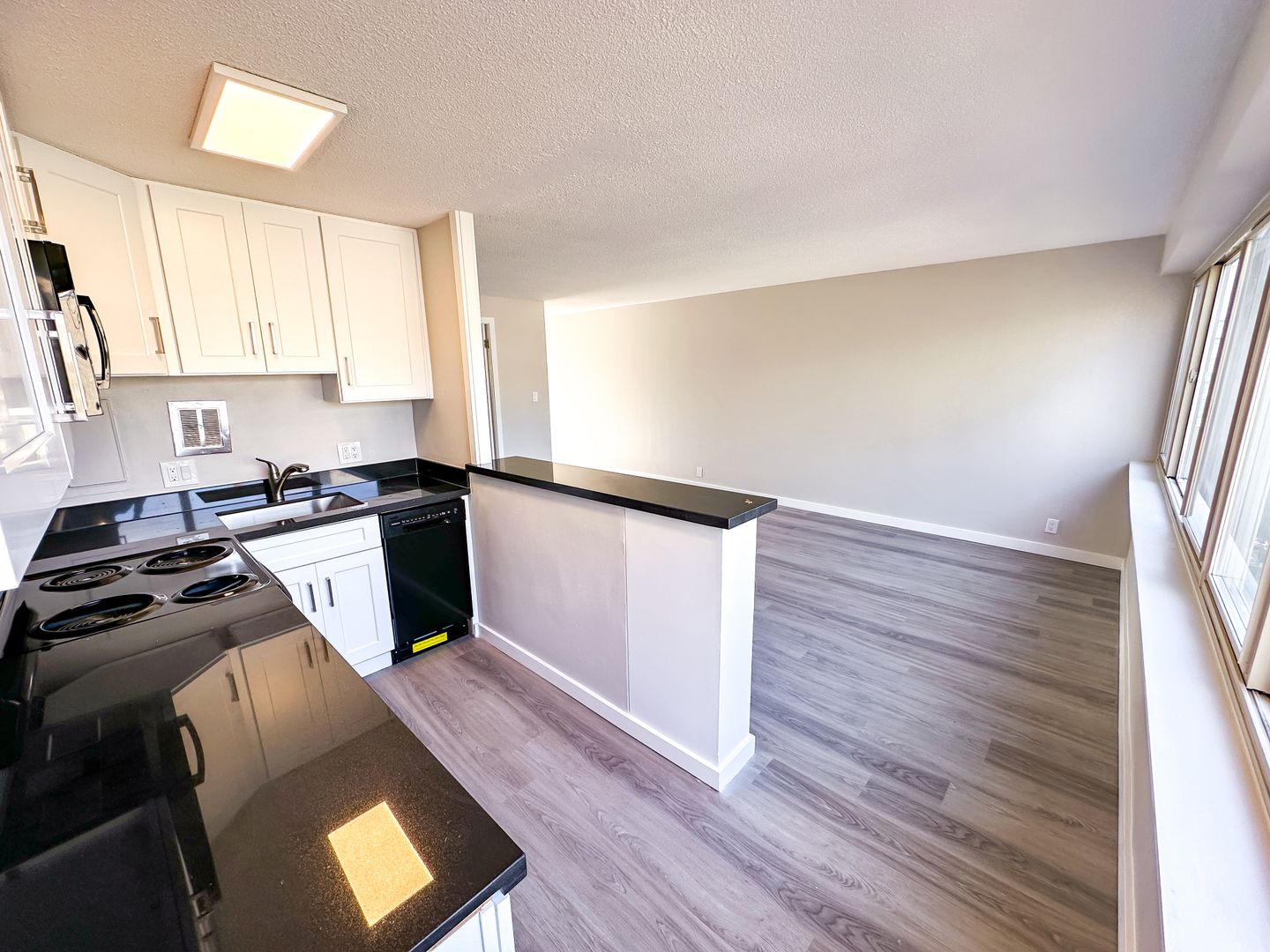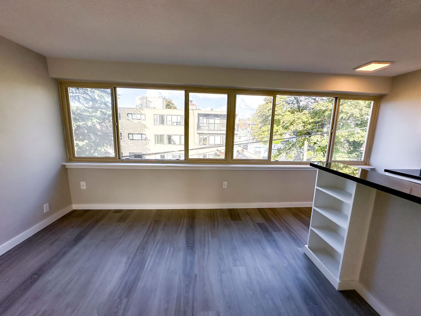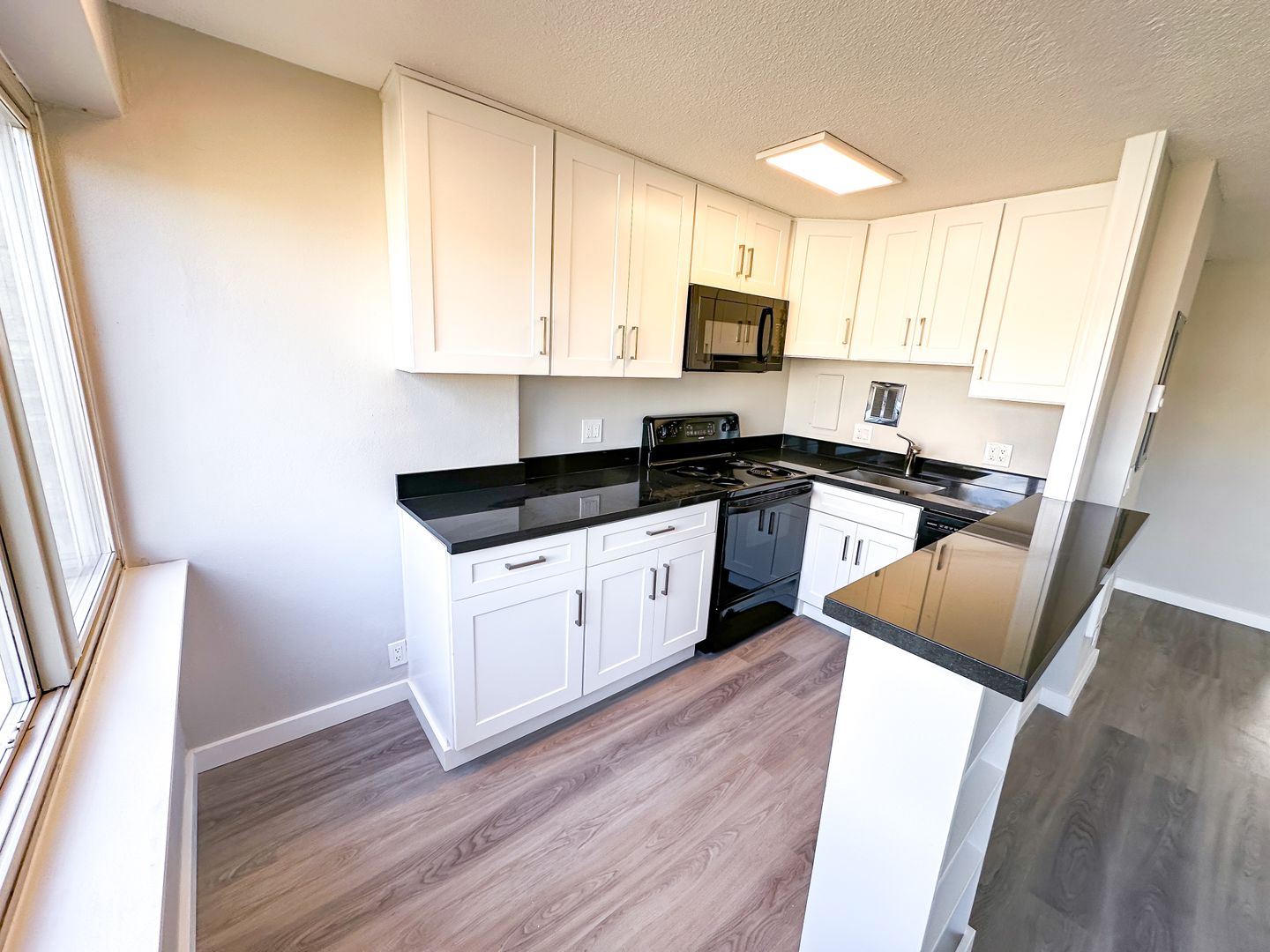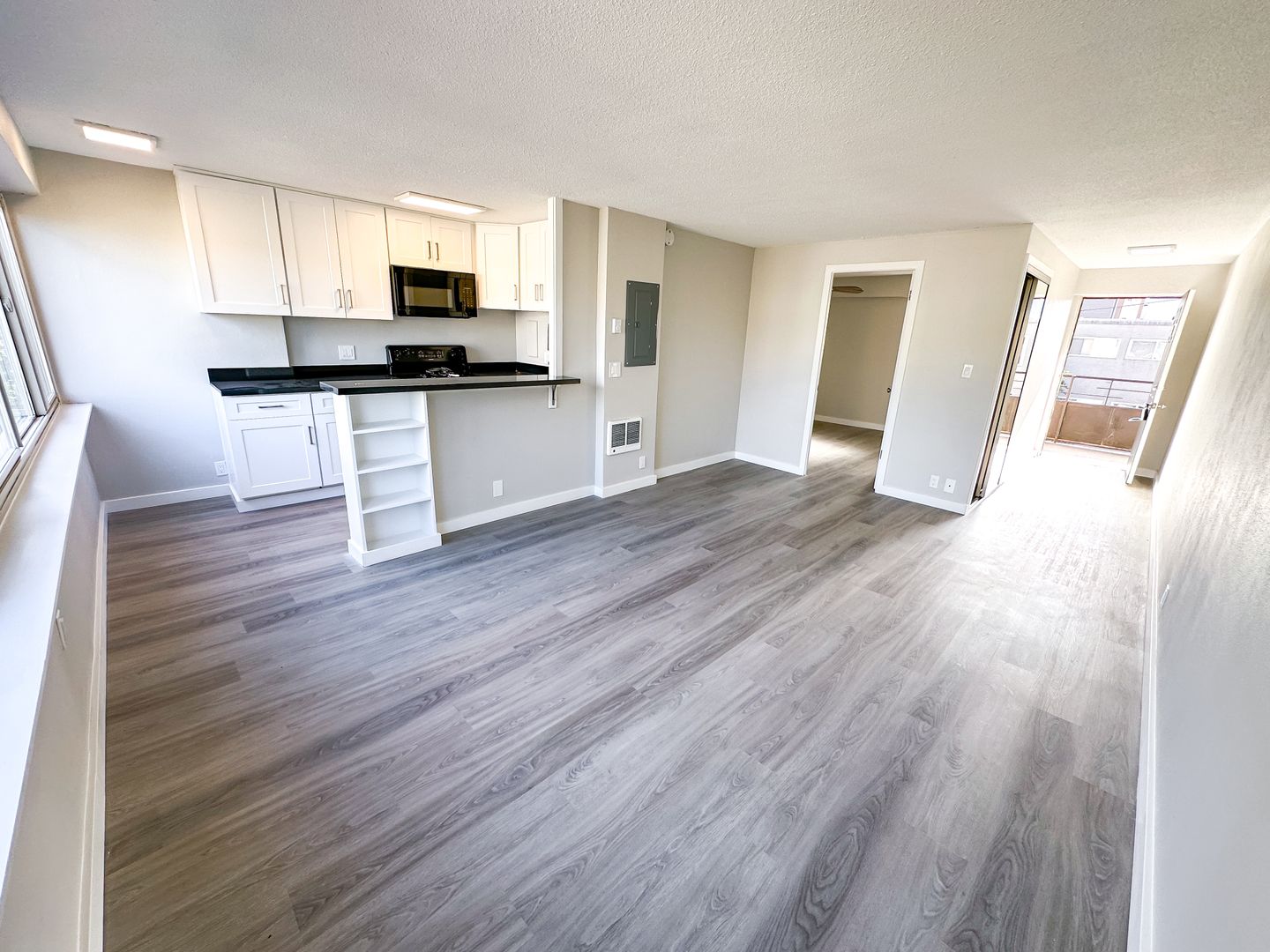 Step into this fully renovated apartment, where luxury and comfort blend seamlessly. New laminate wood like flooring and granite countertops set the tone for modern elegance! Stainless steel appliances, expansive windows, built-in bookcase shelving, and a host of conveniences like a microwave, dishwasher, and garbage disposal await in the open kitchen and living area. The bedroom features full-length mirrored closet doors, and a rainfall showerhead in the bathroom provides a spa-like experience. With reserved parking on site, limited access building security, and the added convenience of a laundry facility, this apartment is a haven of style and functionality in one!