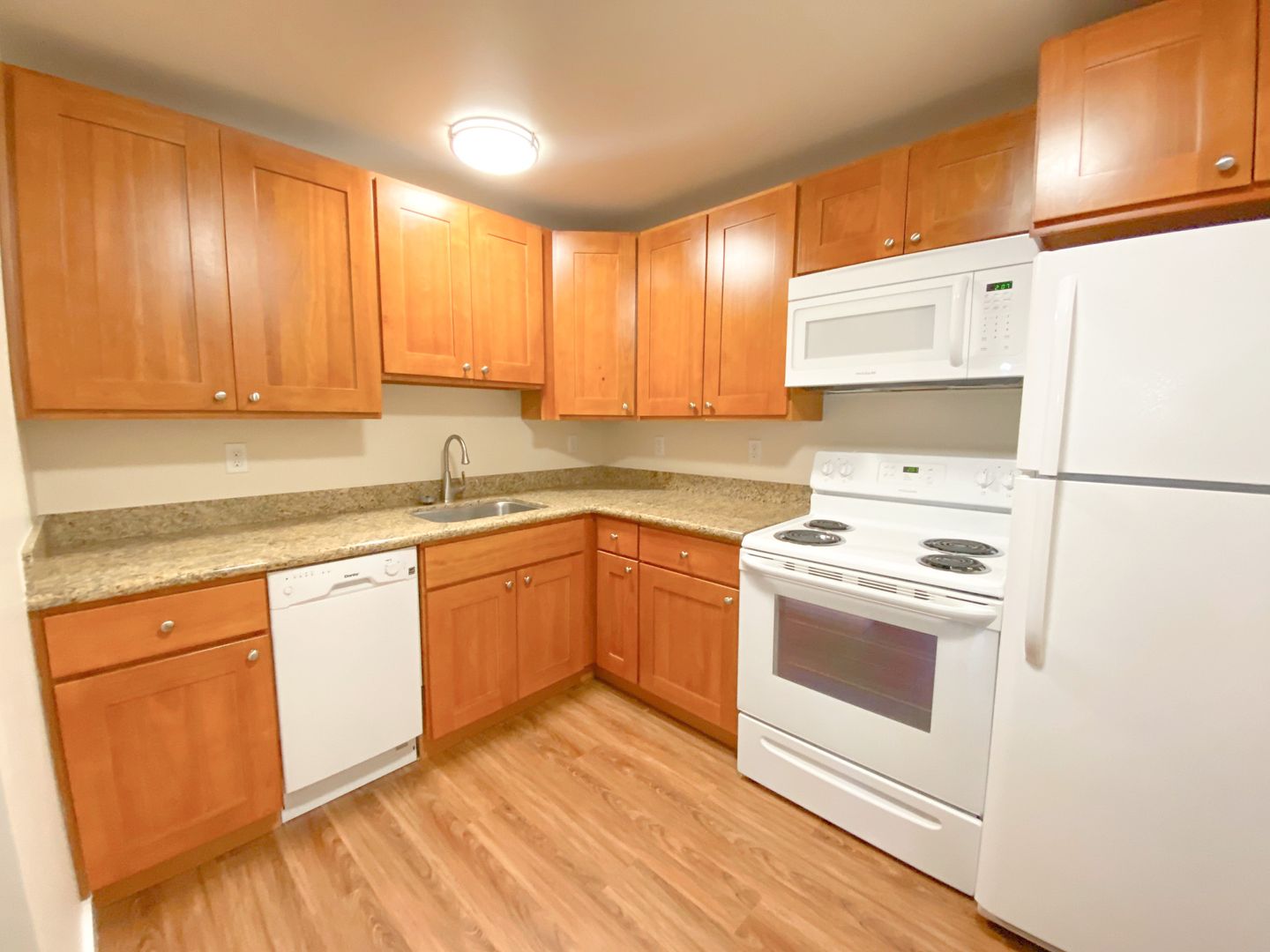 ALL of the units have new laminate wood flooring throughout, Cherrywood kitchen cabinetry, and Quartz countertops. The bathrooms have upgraded fixtures, including a glass shower door. These are truly beautiful apartments, offering value of the highest standards.