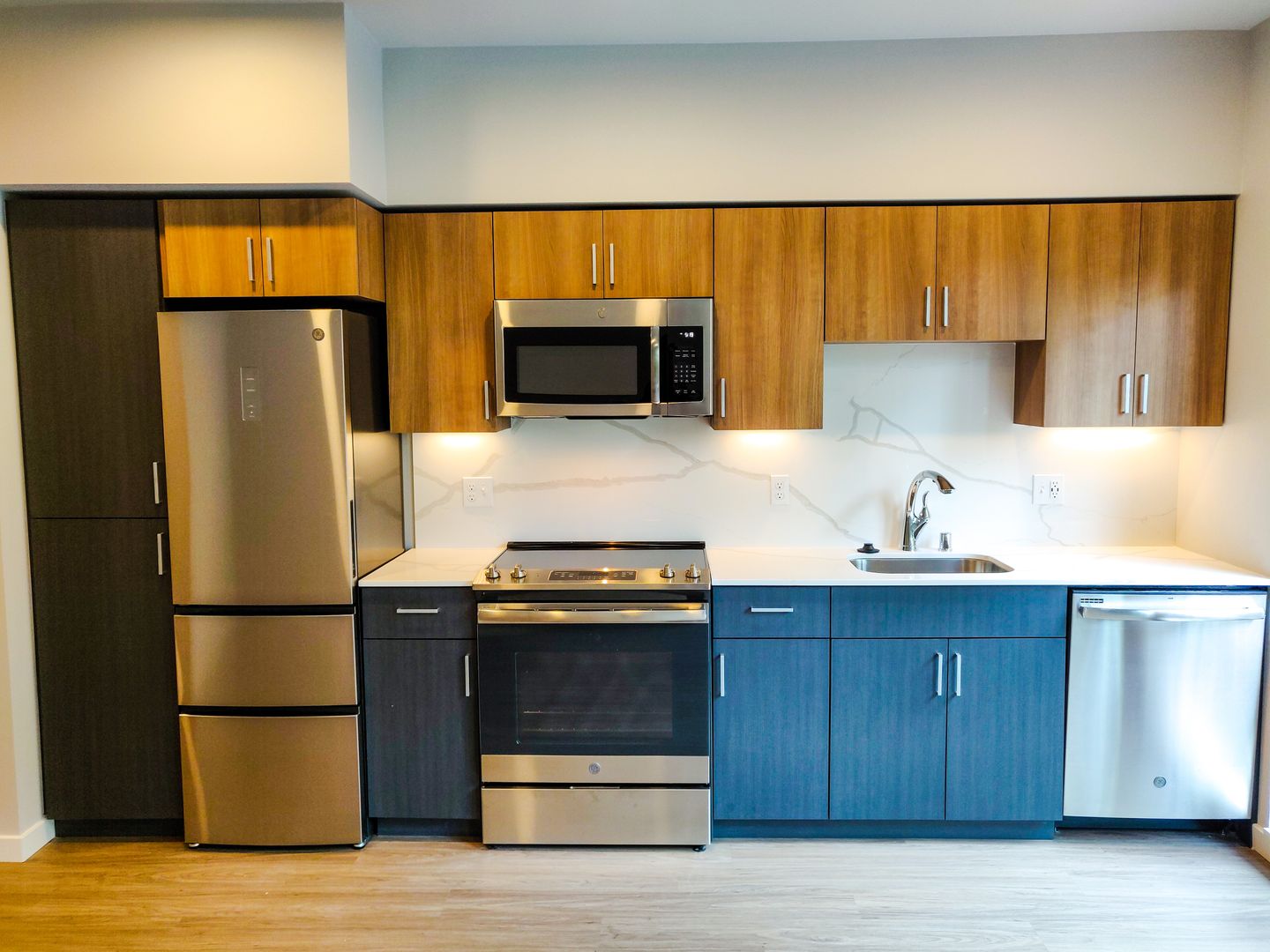 Step into our distinctive apartments, characterized by large floor-to-ceiling windows that bathe your space in natural light. Enjoy the convenience of high-efficiency stainless steel appliances, elegantly designed slab quartz countertops with complementary backsplash, air-conditioning wall ports, and smart lock keyless entry. Inside, you'll find full-sized washers and dryers for added convenience, spacious covered balconies for relaxation, and luxurious vinyl flooring that graces your living areas!